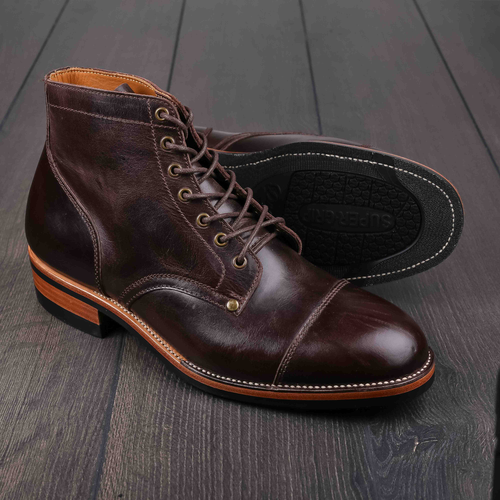 Midas x Skolyx x Dr. Sole Cap toe service boot dark brown pull-up UK11 / EU45 - Seconds