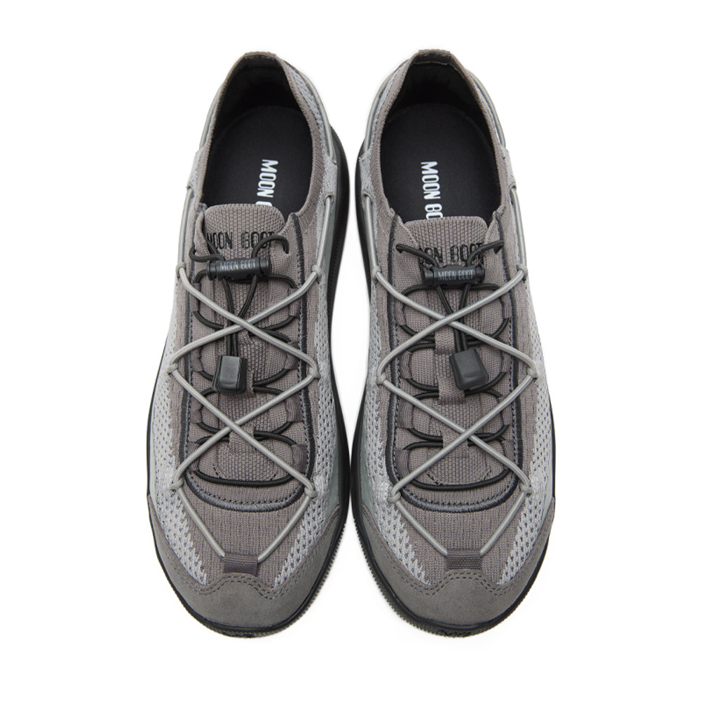 En sportig unisex-sneaker från Moon Boot, med ovandel i meshmaterial med mockadetaljer, i en mörkgrå färg. Den elastiska snörningen med snabblås gör det enkelt att ta av och på skorna, samtidigt som de sitter bekvämt på foten. Greppvänlig yttersula i gummi.