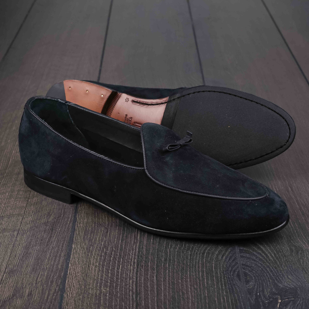 Yanko bow Belgian loafer black reverse kudu suede UK10 / EU44 - Seconds